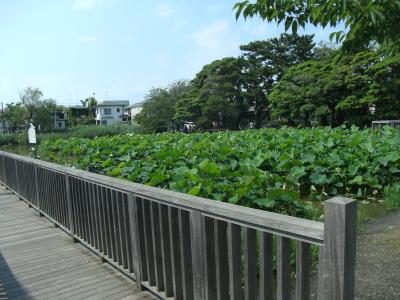 今は住宅地の中ですが、池公園として保存されています。6月訪れたら、池面がハスの葉で覆われていました。7月になればピンク色に染まるのでしょう。