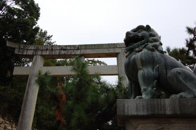 石大鳥居。狛犬好きの私としては、まずは収めておかなくては。