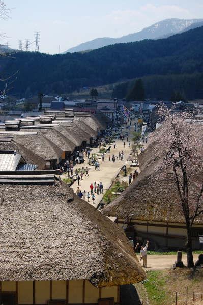 大内宿は、江戸時代に栄えた宿場町。街道の両脇には堀の水が流れ、約30軒の萱葺き民家が建ち並び、いまにも参勤交代が通りそうな雰囲気。国の重要伝統的建造物群保存地区です。