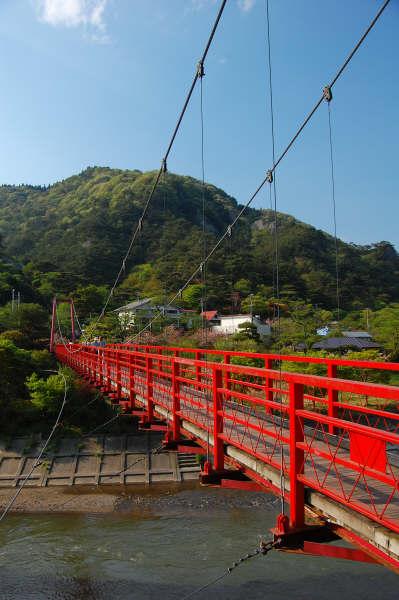 久慈川にかかるつり橋で、全長124m。