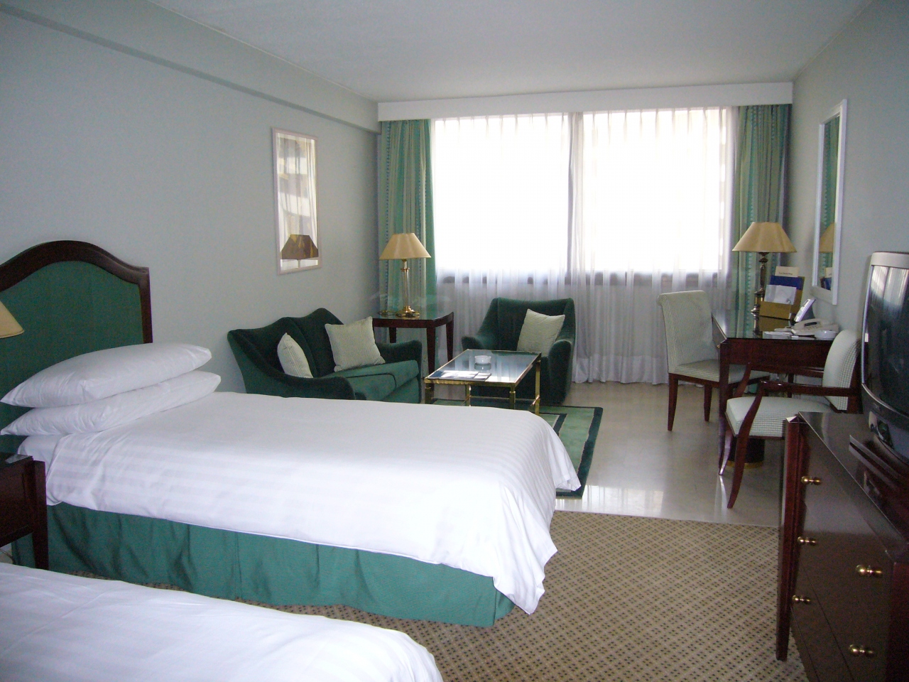 大きめのソファやデスク(インターネット使えます)などもあり、かなり広いです。ベッドもセミダブルくらいのサイズ。
