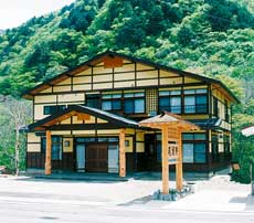 清流檜枝岐川沿いに建つ新築したばかりの和風宿。囲炉裏部屋などのくつろぎスペースも有。