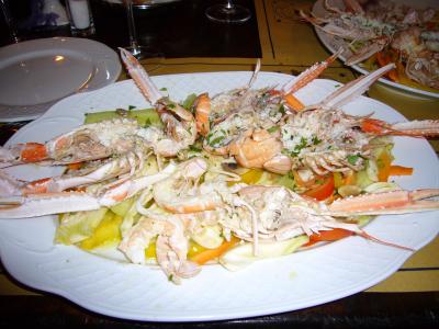 しかも4尾で25ユーロと格安です。エビの下には野菜もびっしりと敷き詰められています。