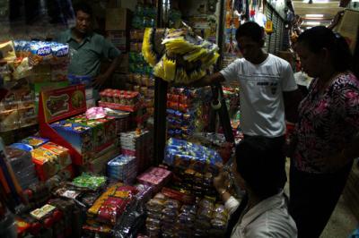 プノンペン託児所の子供たちのお菓子を買っている様子。ローカル市場でお菓...