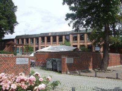 幼稚園かな、子供が塀の向こうから覗いてる。