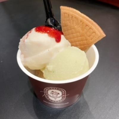 ふだん、スイーツを買い食いすることはないのですが、とてもおいしそうに食べている人がいてつられて3種盛りをいただきました。