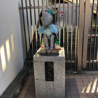 七福いなりめぐりを無事に終えて穴守稲荷駅にむかっていたところ、かわいらしいキツネ像をみつけて思わず写真に撮りました。今回はじめて羽田エリアにお稲荷様がたくさんあることを知ったのですが、地元でも意識されているのを感じました。羽田=お稲荷様(コンちゃん)でしっかりインプットされました。