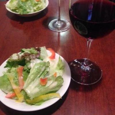 ランチに入りました。特にアルコールを飲む予定はなかったのですが、グラスワインが300円というので思わずオーダーしてしまいました。ランチワインは小さいグラスでだしているお店もありますが、普通サイズでびっくりしました。
