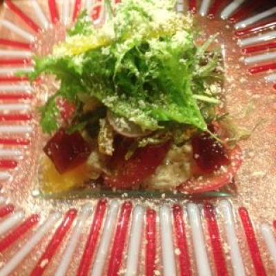 カジュアルなお店ですが、一皿の量が少なめなのでがっつり食べたい人には物足りないかも。または、お会計が高くなってしまう感じです。