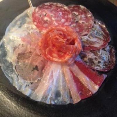 ただ残念なのは生ハムとサラミの盛り合わせのお肉のスライスが薄すぎること。