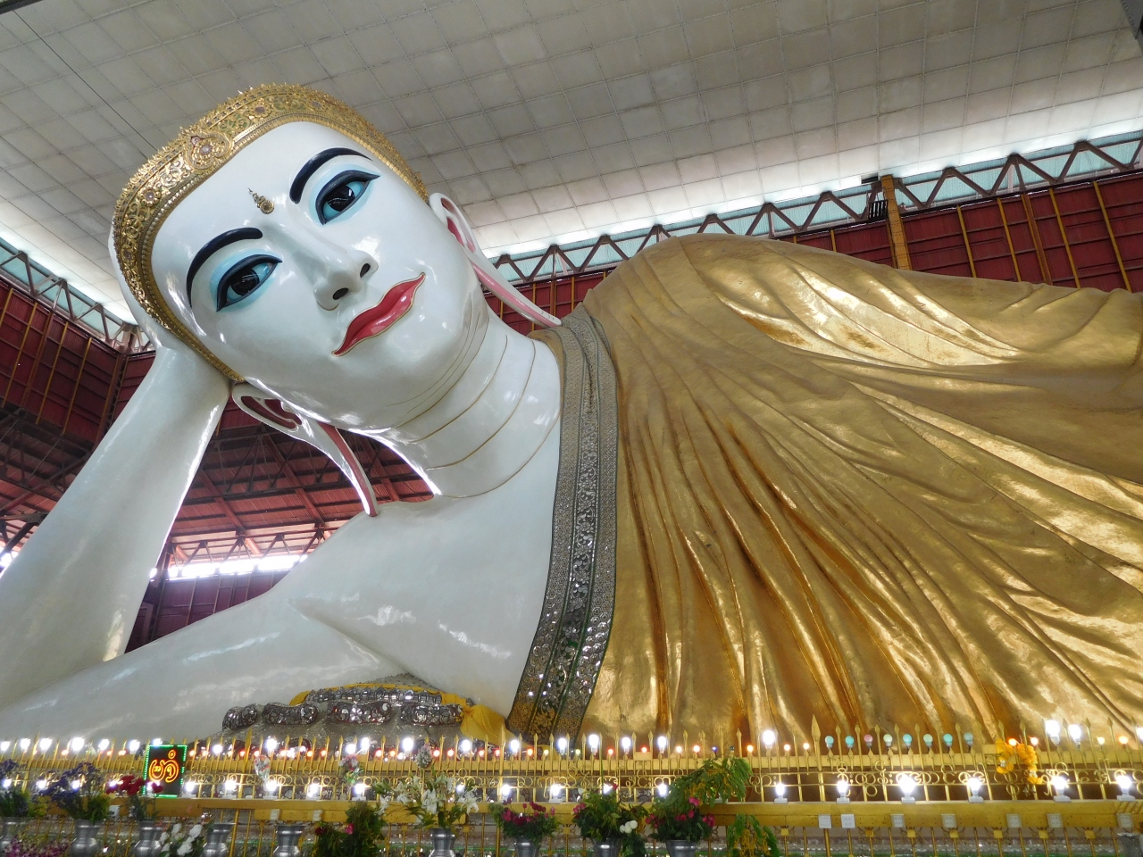 巨大な寝仏が有名な寺院です。ダウンタウンから少し離れたところにあります。