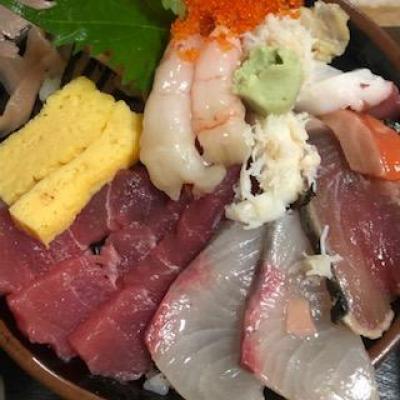 ランチから深夜までやっているお店です。昼から飲んでいる人もいますが、ここではボリュームがいっぱいの海鮮丼にチャレンジしていただきたいです。しっかり食事モードでのぞんでも女性にはちょっと多いかも。おいしいので完食したいところです。