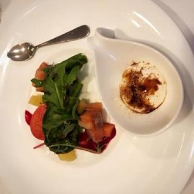 1丁目の裏通り、雑居ビルの中にあるお店です。わかりにくい場所ですが、ビルの前に看板がでているのが目印になっています。お手頃ランチが人気ということで行ってきたのですが、そのサービスは終わっていたようで、少しお高くて上品なランチのみでした。