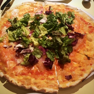 ランチが終わっているような時間にお腹がすいて、このレストランフロアに来たところ絶賛オープン中だったので入りました。お店の外側にもテーブルがあって、室内ですがオープンエアのような感覚がおもしろいと感じました。ピザがおいしかったです。