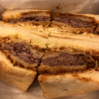 大阪に寄るならここのサンドをぜひ、とおすすめされたお店です。ボリュームのあるカツサンドが人気商品なのだそう。女性には食べきれないくらいの大きさですが、ハーフサイズもありました。おみやげにも買ったのですが、冷めてもおいしかったです。