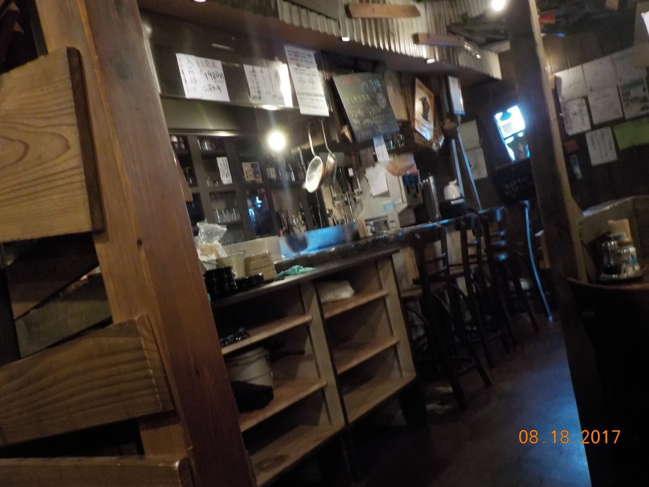 チェリー自体も小さな店内は常連客らしい人のみで、私たちは店頭のテーブル席に案内されました。串焼きのお店ということですが、ご飯ものや麺類が一切ないようです。家族連れには向いていないです。酒飲みのお店ですね。