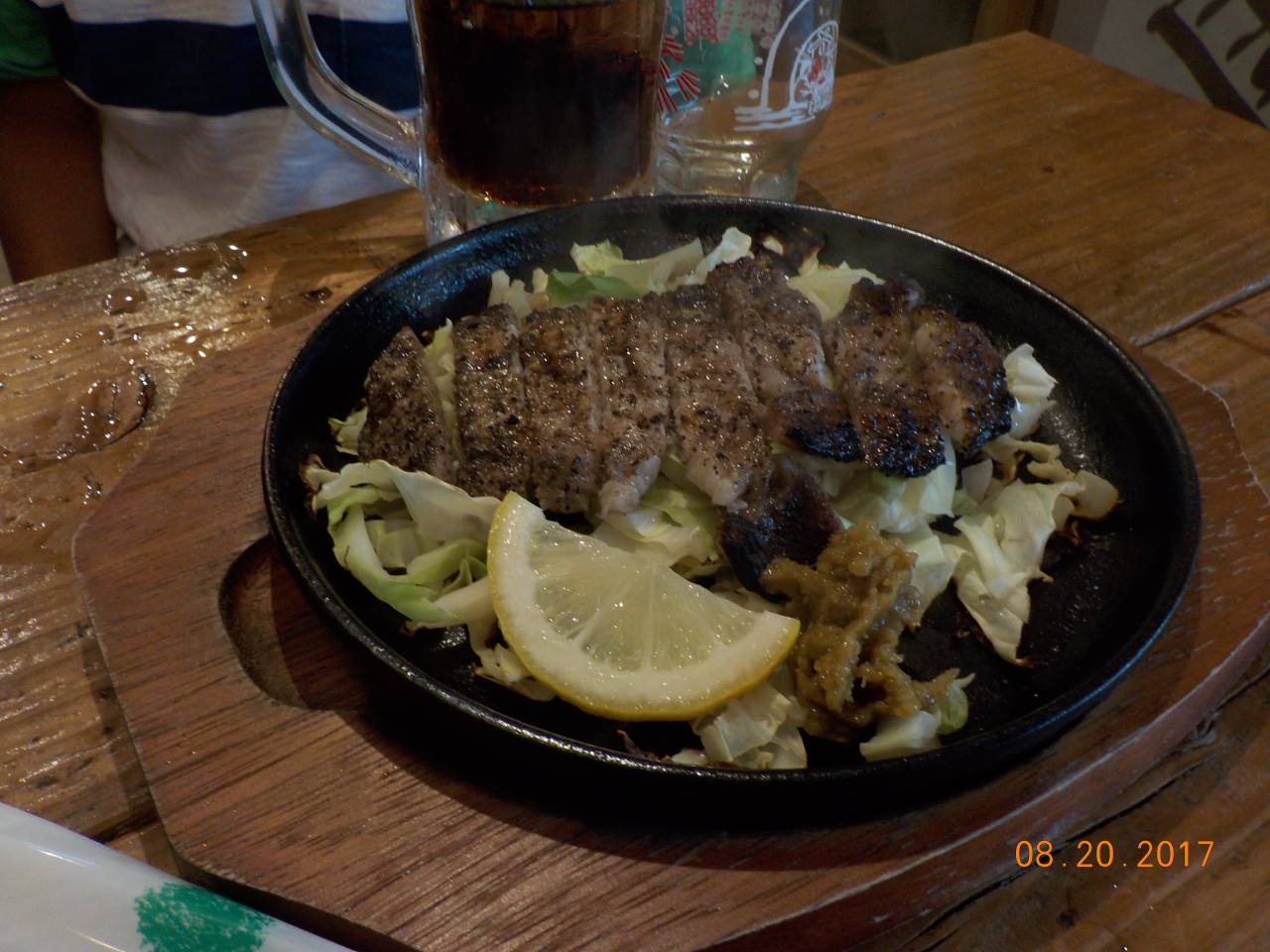 石垣牛ステーキが安く食べられると評判ですが、安く食べられるのはモモの100gが1,000円だけです。もちろん注文しましたが、いたって普通です。モモなのでどうしてもパサパサに感じます。しかも鉄板なので、早く食べないと完全に火が通ってしまう。