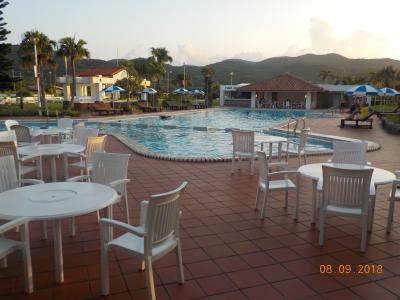 ホテルはユニットバスが多いですが、ここは大浴場もあり、海水浴のあとにサッパリできます。プールはそれほど大きくありませんが、幼児用、水深の浅い部分、深い部分とわかれていて家族連れに向いています。