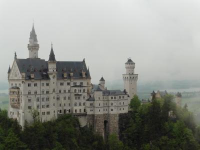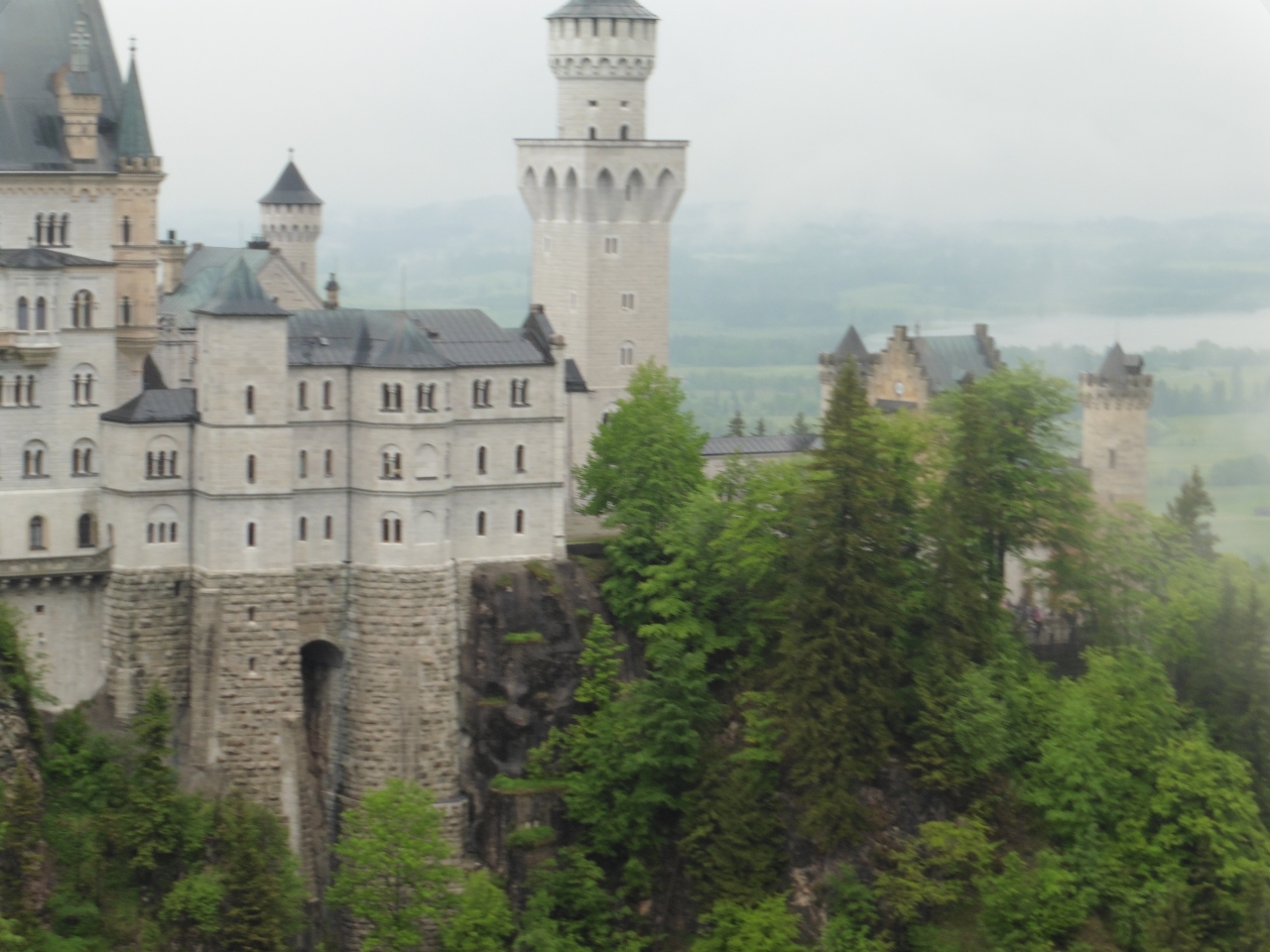 ここから、見るノイシュバァンシュタイン城は最高です。ここまで来て、この橋を素通りには出来ません。細いつり橋(?)なのに、カメラに収めようと思う人達でいっぱいです。もちろん、私も、カメラを持って、人をかき分け。お互い知らぬ者同士、撮りあったり、スポットを譲りあいます。