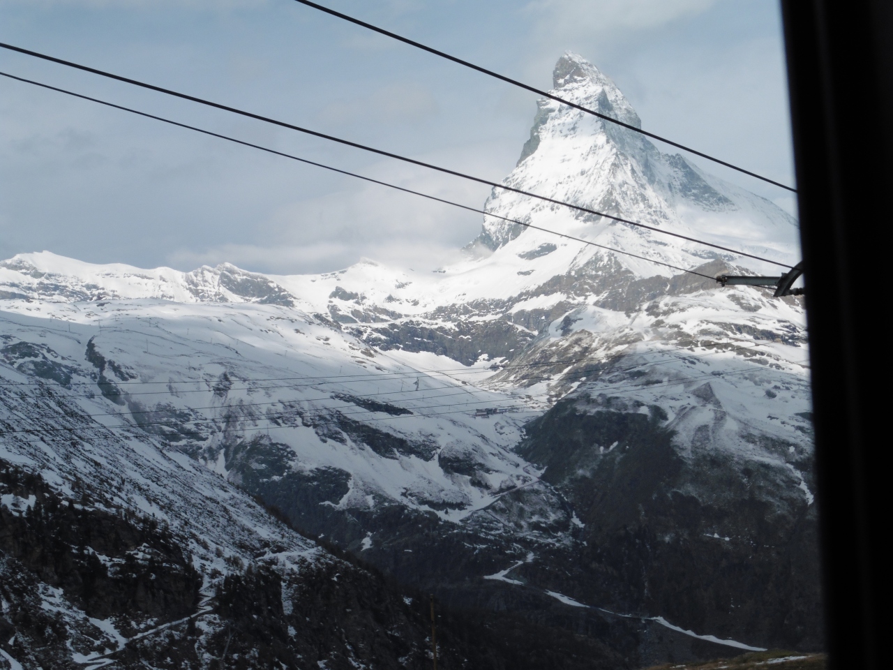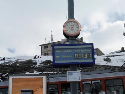 ツェルマットで、ゴルナーグラード鉄道(登山列車)に乗り換える。標高3,131メートルのゴルナーグラード展望台へ。美しいマッターホルンと、ほかの山々が、地上とは違う自然の雄々しさを、済んだ空気の中で、見せつけてくれます。