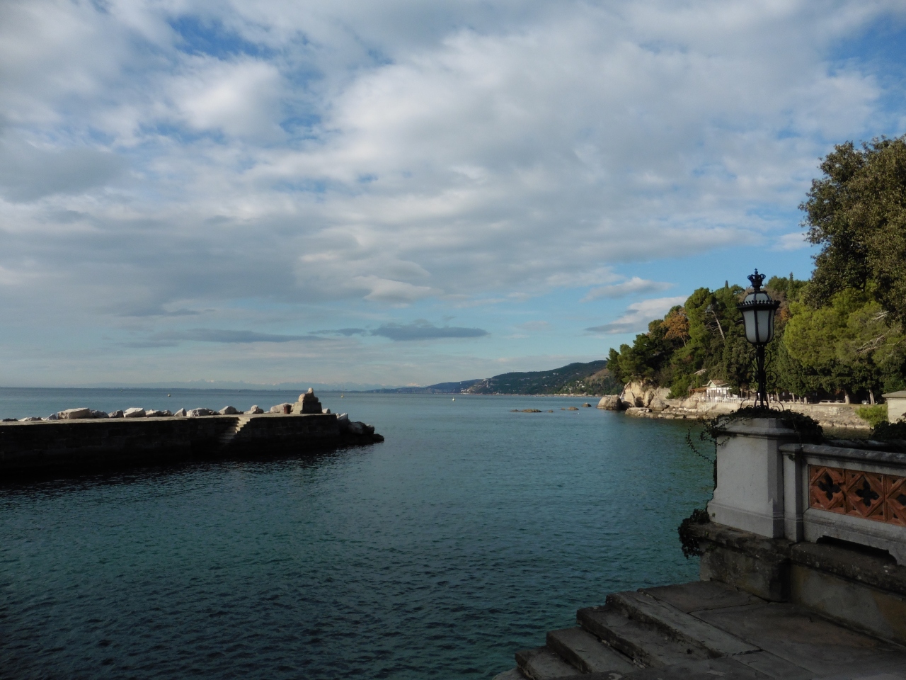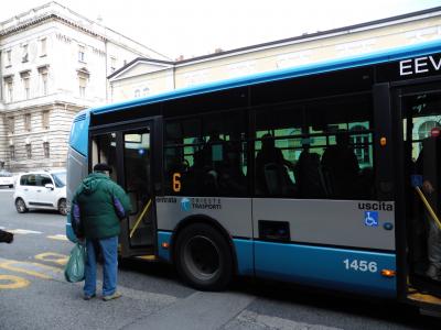 トリエステ中央駅から、バス、乗り継ぎなしの1本で、30分くらいです。海沿いをバスは走りますから、気持ちいい。海の青と木々の緑が綺麗。