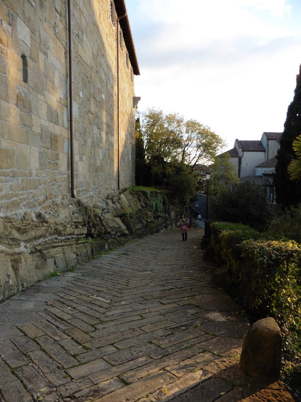 トリエステ中央駅から、バスで20分くらい。市内を少し回り、山手の方へ。住宅地を通り抜け、石畳に、年季の入った煉瓦の建物の狭い道を、バスは走ります。それを車窓で見るのも、また、GOOD。