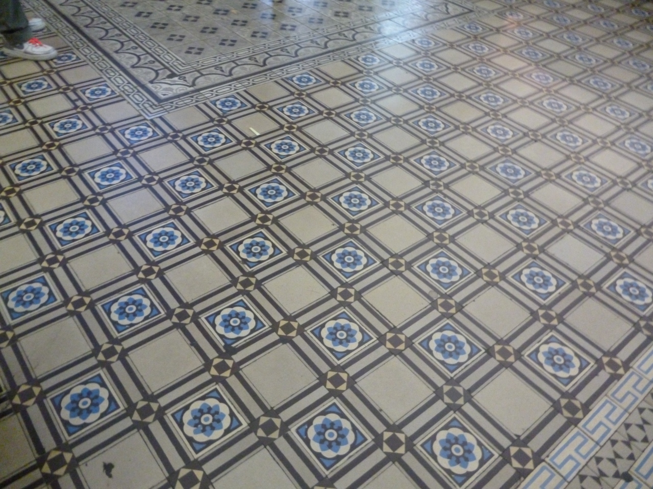 観光客が、タイルや建築物に乗ったり、足掛けたりしているのを、注意する為。