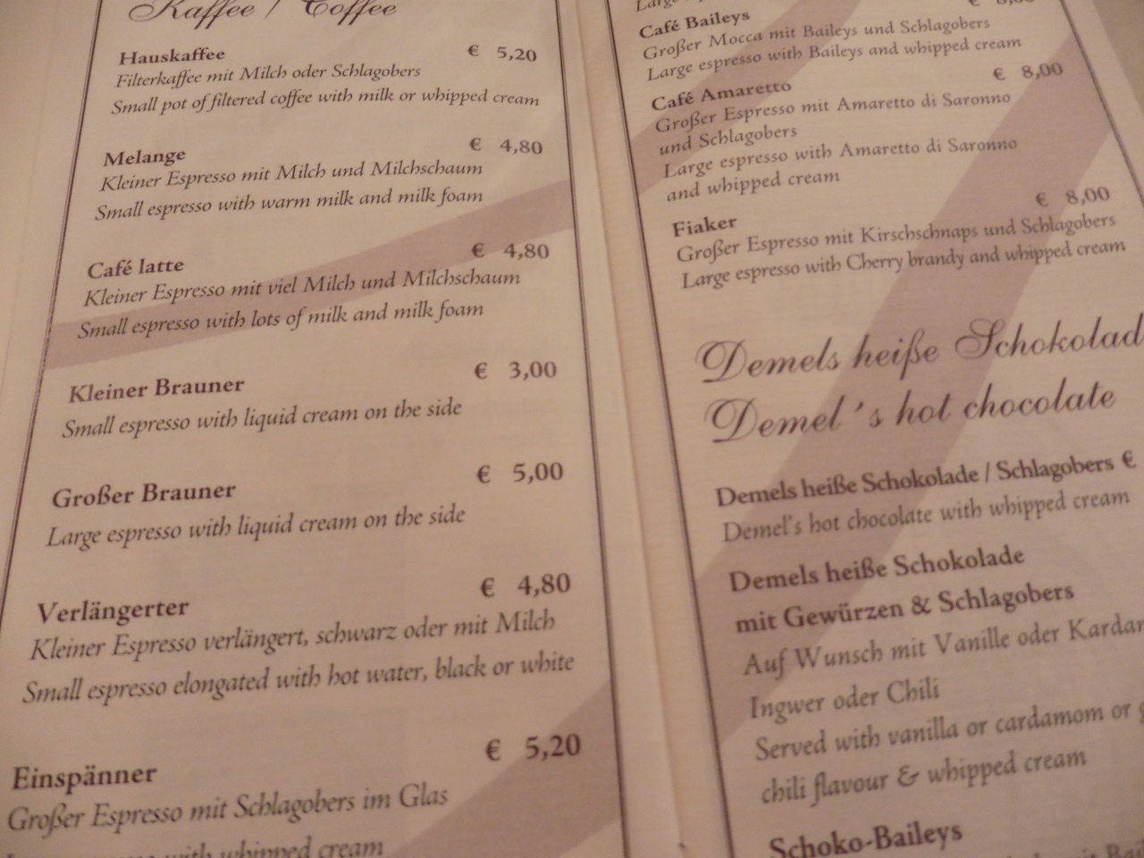 - 飲み物、ケーキで、ひとり最低13ユーロ位は必要。