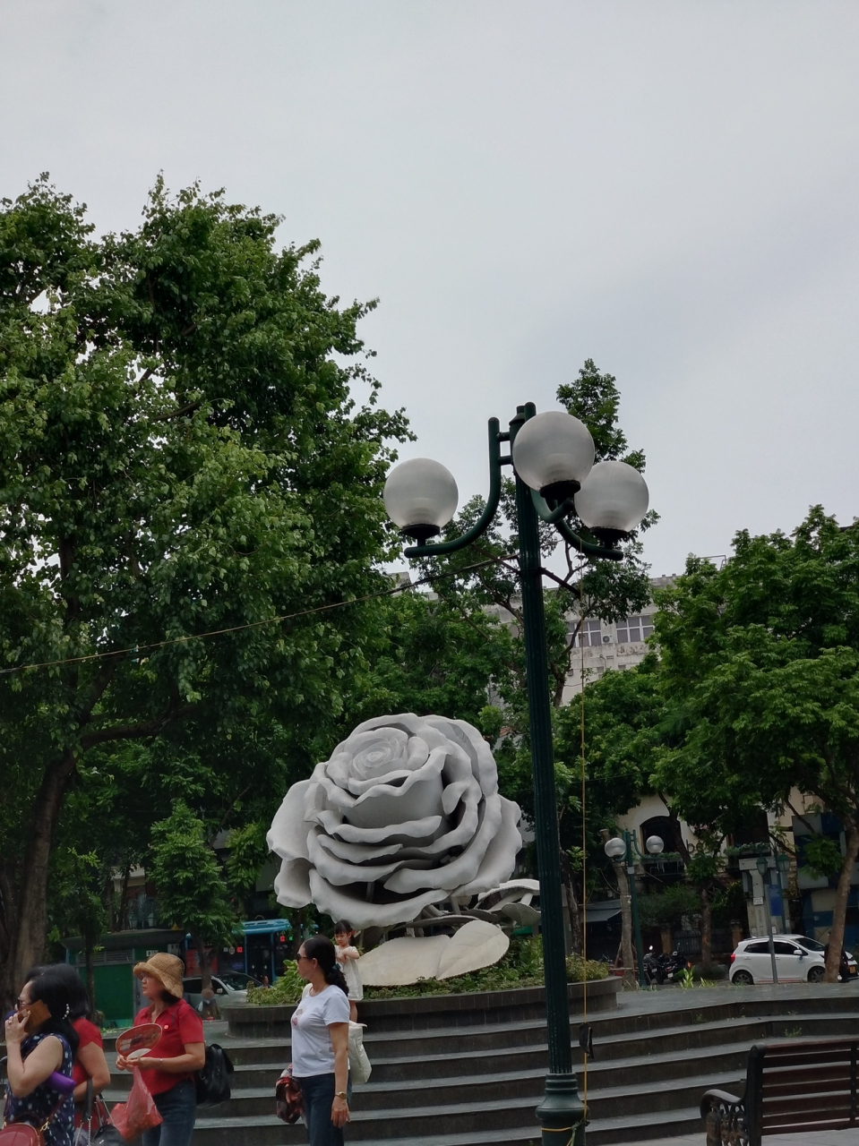 ホアンキエム湖、西側の市街地の中にあります。まわりは、土産物店、カフェ、レストランなど、ぎっしりと軒を連ねています。