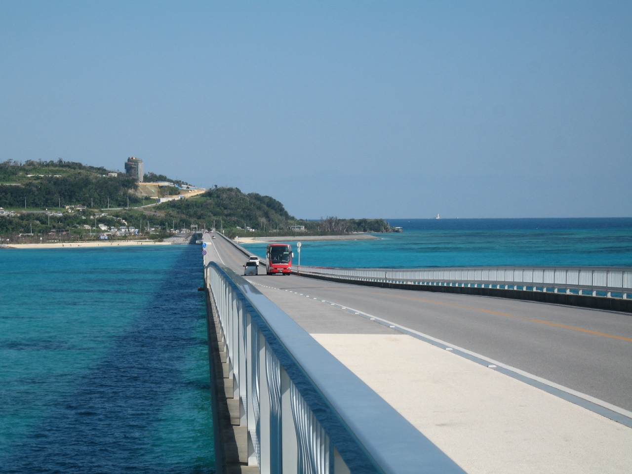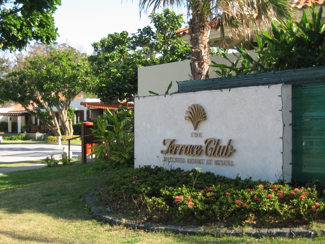 テラスからは名護湾側、東シナ海側の両方の海が見えて