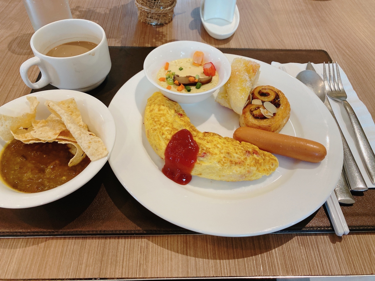 朝食はバイキング形式で、日本食のメニューも一部ありました。- 旅行時期