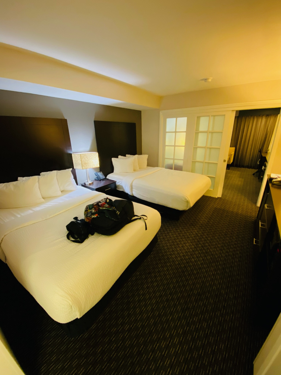 ベッド2台+1ルームの部屋に宿泊。