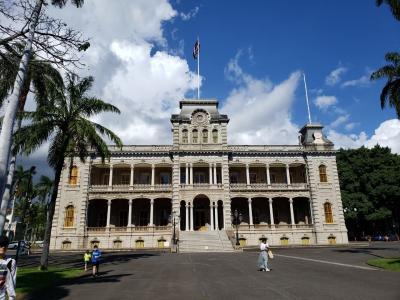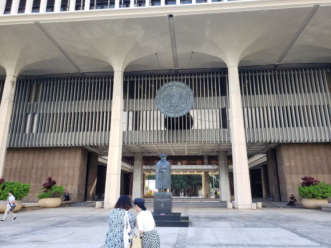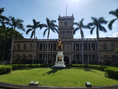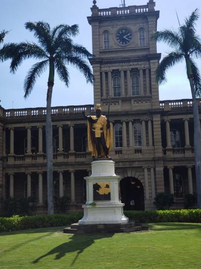 日本のテレビ番組やガイドブックなどでもよく紹介されているカメハメハ大王像の後方にあるハワイ州最高裁判所。