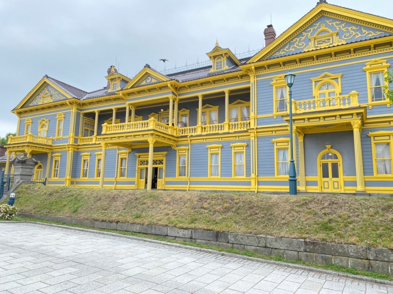 函館ベイエリアから、徒歩15分程の場所にある金色で洋風の建物。