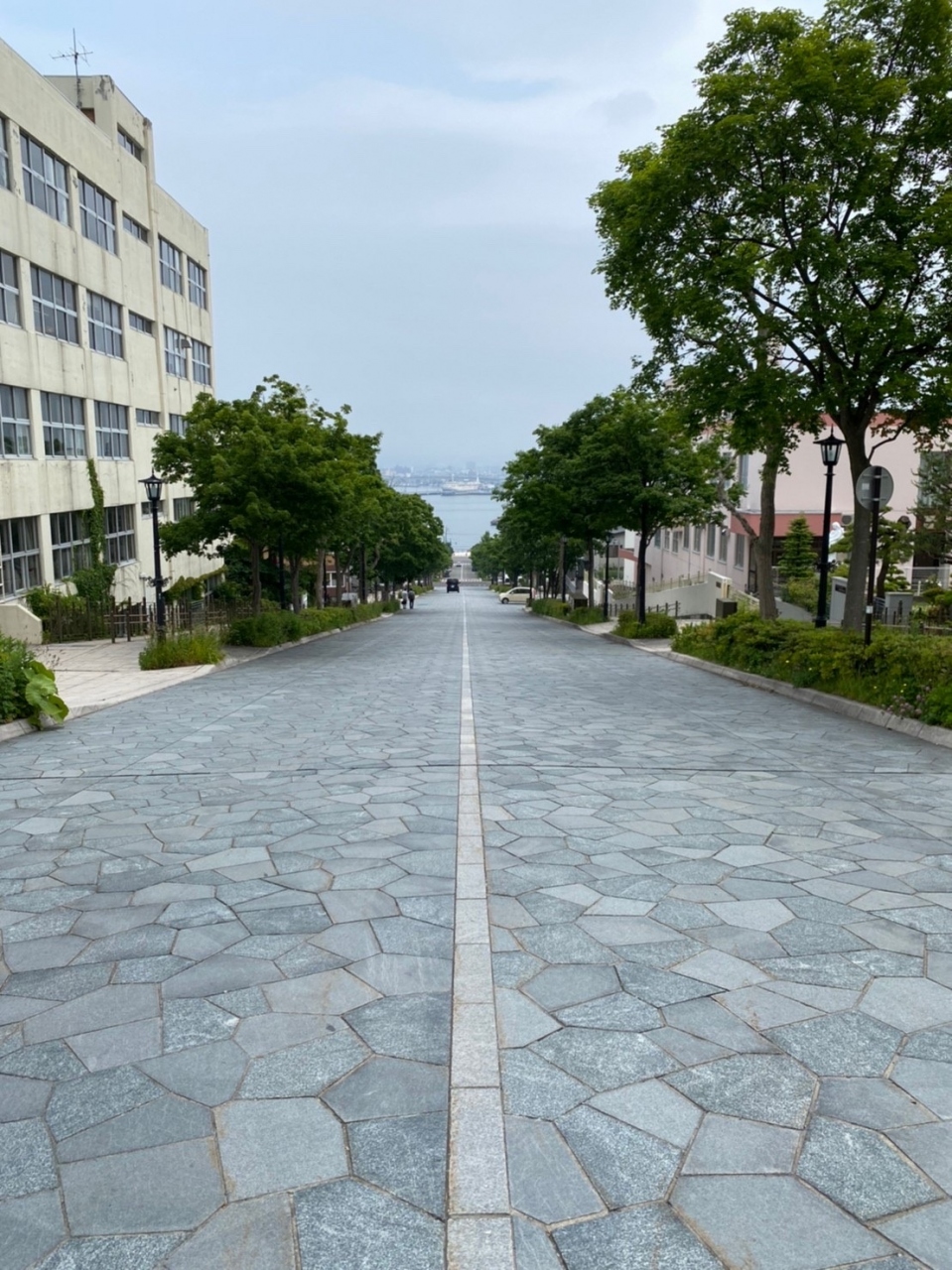函館市内にある坂は、幅の広い坂が多かったですが、この坂は幅も狭く、結構急でした。