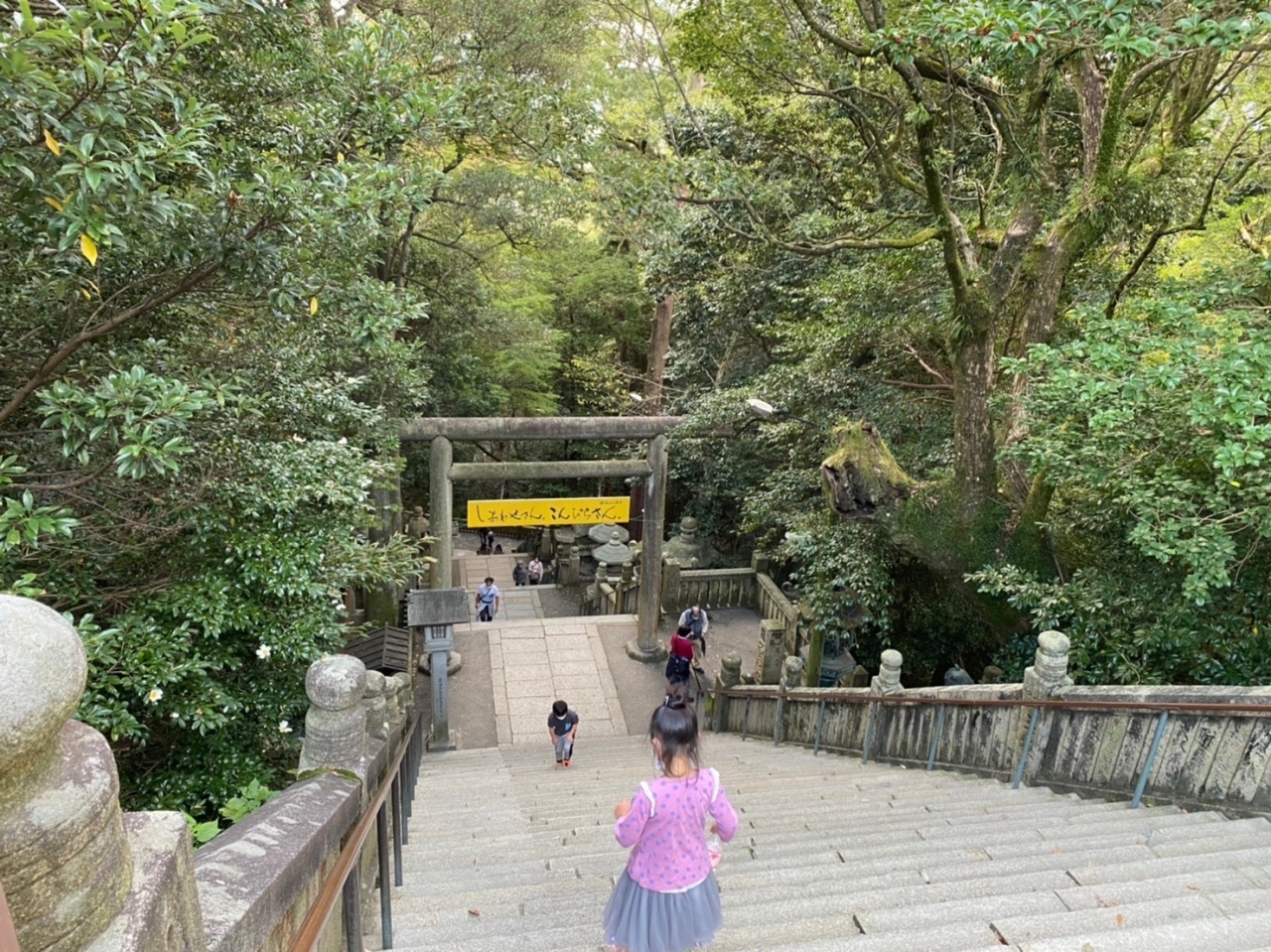 参道から御本宮までは785段の石段があり、片道25分ぐらいかかりました。