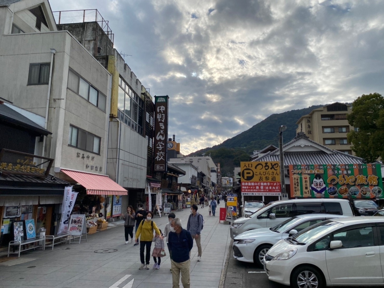 参道両脇にはお土産屋さんや香川県名物の讃岐うどん店など多くのお店がありました。