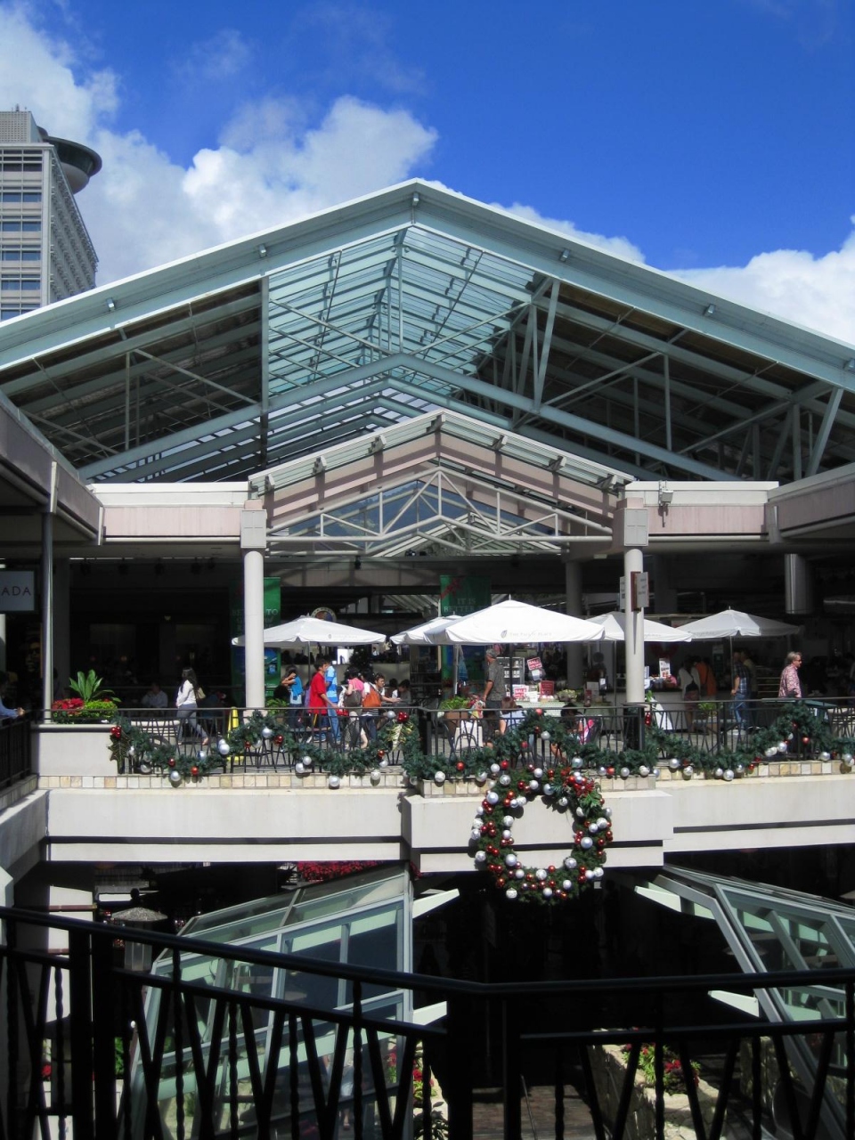 1950年代からカラカウアアベニューに存在するワイキキ最古のショッピングセンター。昔のハワイ、ワイキキをテーマにした写真集などを見ると必ずこのインターナショナルマーケットプレイスが写っています。ジャングルを思わせるような緑豊かなこのショッピングセンターで楽しそうに過ごしている1950~60年代初頭の観光客の姿を写真集で見るとハワイが簡単には手の届かない憧れのリゾートだったことがよくわかります。今も緑豊かで池には鯉が泳いでいて昔のイメージそのままという雰囲気ですが、中に入ると少々怪しげだったりB級っぽい感じがする店が多いような感じです。フードコートもありブルーウォーターシュリンプ&フィッシュマーケット、ヤミコリアンBBQもフードコート内にあります。ここで長い時間を過ごすことはありませんが、たとえば早朝ハワイに到着してホテルのチェックインが午後からというような場合の空き時間にここを訪れハワイ、ホノルルの歴史の1ページに触れる感覚で散策してみるのもいいかもしれません。