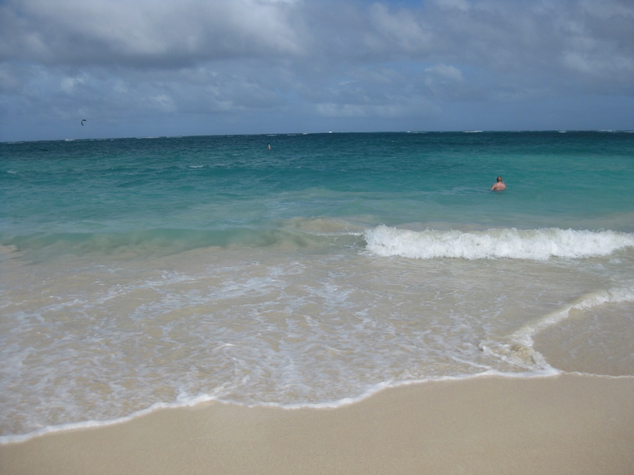 レンタカー、旅行会社のオプショナルツアーなどカイルアビーチに行く方法はいろいろありますが、バスでも簡単に行くことができます。アラモアナセンターのバス停から56番、57番、57番A でカイルアに向けて出発します。特に57番、57番Aはバスの本数が多いので使い勝手が良く便利です。ただしカイルアからアラモアナに帰るときに夕方18時以降はバスの本数が極端に減少して不便になるので注意が必要です。今回カイルアに到着後すぐに運良くメイシーズの前のバス停に70番のバスが来たのでこの70番のバスに乗り楽々カイルアビーチまで行きました。70番のバスは本数がとても少ないのでTHE BUSのウェブサイトでタイムテーブルを確認する必要があります。カイルアビーチのすぐ近くにはカラパワイマーケットがありここでサンドイッチやコーヒーを買うことができるので便利です。カイルアビーチでその美しい風景に癒され日常から解放され何もしない時間を楽しむことができました。ただ美しい海を眺めているだけで充分満足できました。