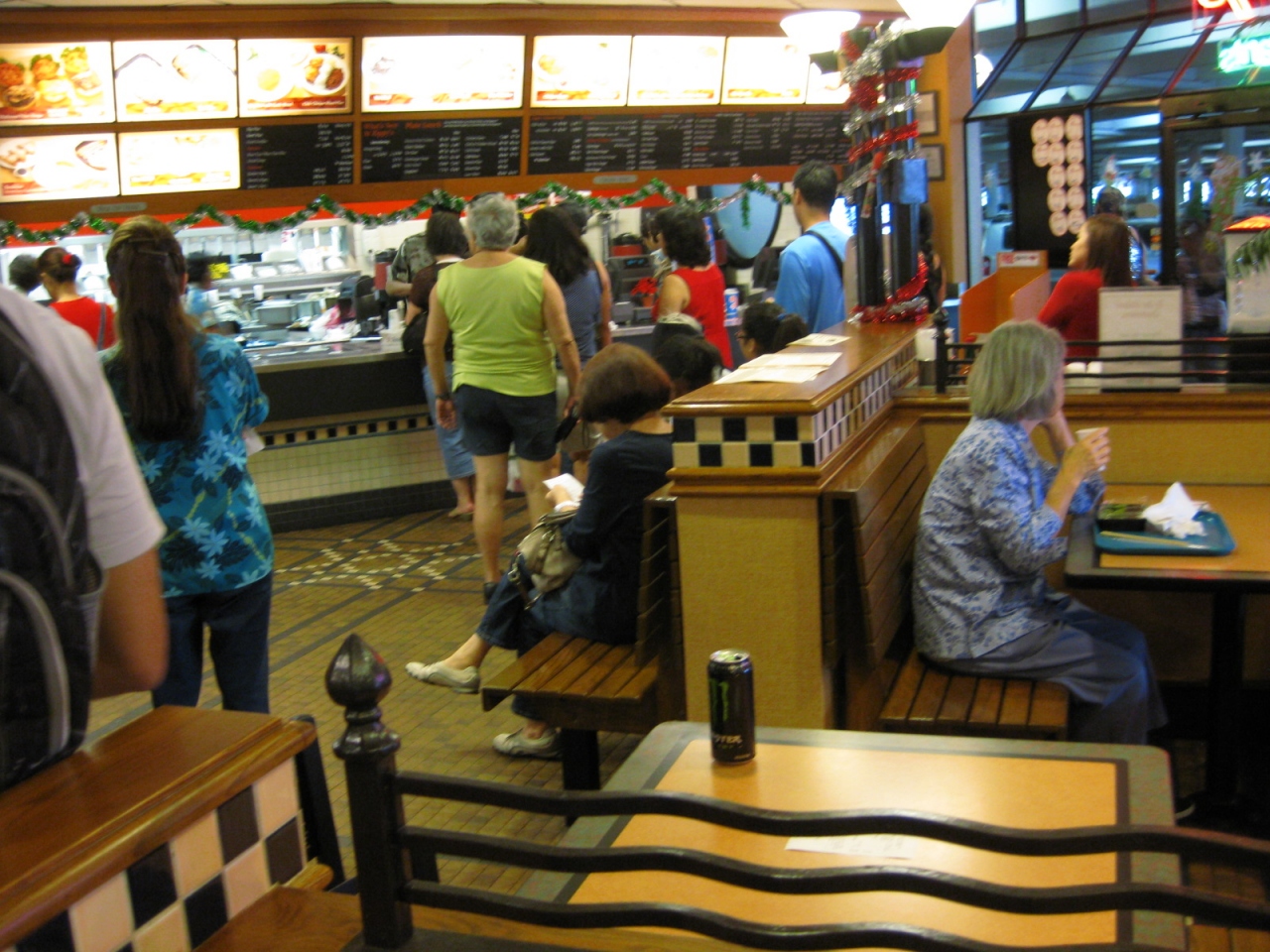 ハワイのロコが大好きなファミリーレストラン。アラモアナセンターのシアーズ1階にあります。とても便利なロケーションで朝から大盛況、大混雑ですが、日本人観光客はとても少なくロコが圧倒的に多いです。このジッピーズアラモアナ店は活気があって雰囲気もとても良くこれまで何度も利用しています。ジッピーズはワイキキには店舗がないので、このアラモアナ店またはカパフル店が利用するのに便利です。ただシアーズが2013年6月2日で閉店する予定なので閉店後このジッピーズがどうなるのか詳細情報がわからないので気になっています。メニューはチキンカツ、ジップパック、テリヤキビーフなどどれもボリュームたっぷり。サイミン、サンドイッチ、ハンバーガーなどロコも観光客も大好きなメニューも勿論揃っているしジッピーズの代名詞ともいえるチリも大人気です。ジッピーズのウェブサイトではお得なオンラインクーポンを発行しています。ジッピーズで食事した後、併設されているナポレオンズベーカーリーのドーナツやケーキを食べるのも楽しみのひとつです。