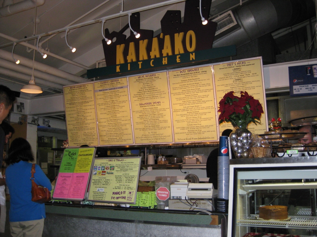 ワードセンターで、ショッピングしたりワード16シアターで映画を見た後、利用することが多いです。カイムキにある有名店3660オンザライズの姉妹店だけあって味は本格的です。プレートランチをオーダーするときに御飯は白米または玄米、サラダはグリーンサラダまたはマカロニサラダを選びます。プレートランチは、スイートチリチキン、ショーユチキン、ガーリックチキン、ロコモコ、カルアモコ(カルアポークを使ったロコモコ)、マヒマヒなど種類豊富です。サラダも充実していてチャイニーズチキンサラダ、カカアココブサラダ、アヒサラダなどがあります。カカアコキッチンのオープンエアのテラスで食事するのもいいし、トゥゴーしてアラモアナビーチで食べるのもいいと思います。