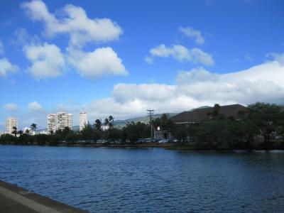 朝早い時間帯にアラワイ運河沿いを散歩するのは、とても気分のいいものです。なんとなくいい一日が始まるような気がしてきます。散歩しているとジョギング、ウォーキングに汗を流している人々を多く見かけます。ハワイでは特に健康志向の人が多いようです。アラワイ運河沿いからカパフルアベニューに入りワイキキ図書館のあたりまで歩いたら朝の散歩は終了。朝食を食べに行きます。それからアラワイ運河は散歩には最適なのですが、水は濁っていて汚染されているので、安易に水に触れたりしないよう注意が必要です。夜は、治安に問題があるので近寄らないほうが良いと思います。