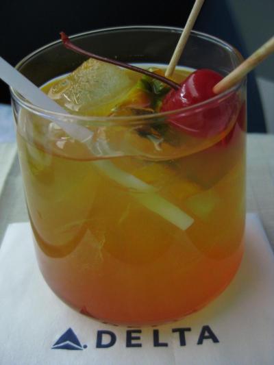 ビジネスエリートのキャビンではシャンパンは勿論マイタイも味わえるので最高です。
