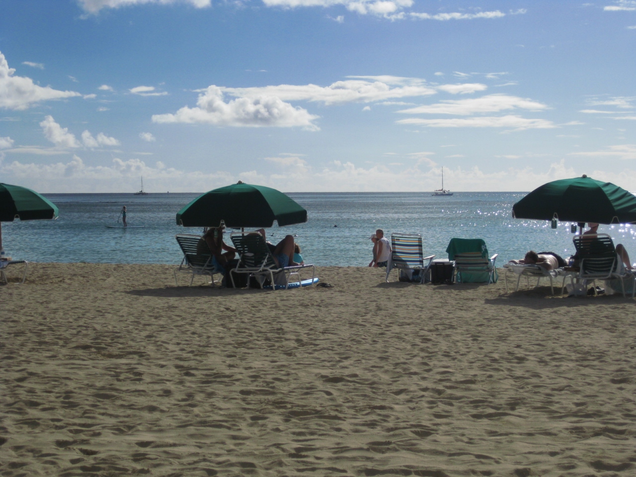 ワイキキの西側に位置しておりビーチバレーのコート周辺ではいつも賑やかな歓声が響いていて印象としては陽気で楽しいビーチ、風景としてはフォートデルッシービーチからトランプインターナショナルホテルなどワイキキの新しいランドマークの眺めを楽しめる一方でワイキキ~ダイヤモンドヘッドの絵画のように美しいまさにリゾートを象徴するような眺めも楽しむことができます。- 旅行時期