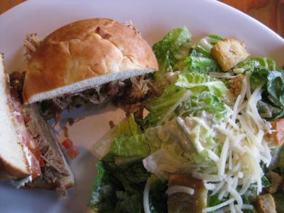 そしてこれももう何度も味わっているエクスプレスランチ。アペタイザー、スープ、シーザーサラダ、カルアピッグBLTサンド。野菜の新鮮さが伝わってきてとてもおいしいシーザーサラダ、食べ応えも味も充分に満足できるカルアピッグBLTサンド。このボリュームたっぷりのランチにはデザートとしてワイアルアチョコレートバーが付いています。お得です。コーヒーも付いているのでランチを堪能することができます。