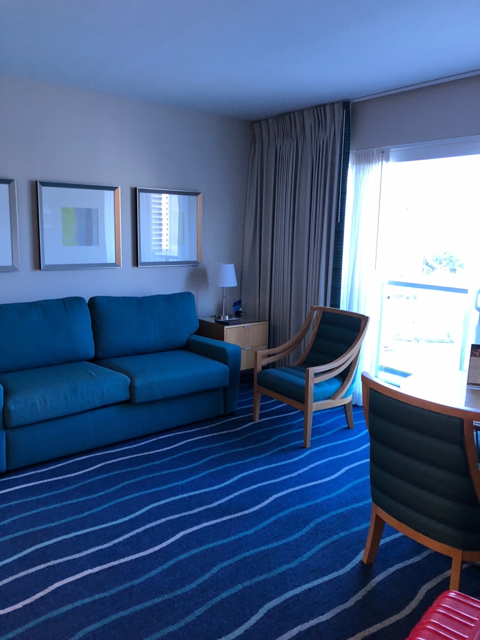 アラモアナショッピングセンターまでは、ホテル2階から繋がっているのですぐに行けます。それこそ買い物していて荷物が重くなったら1度部屋に置いてくる事も出来る距離です。