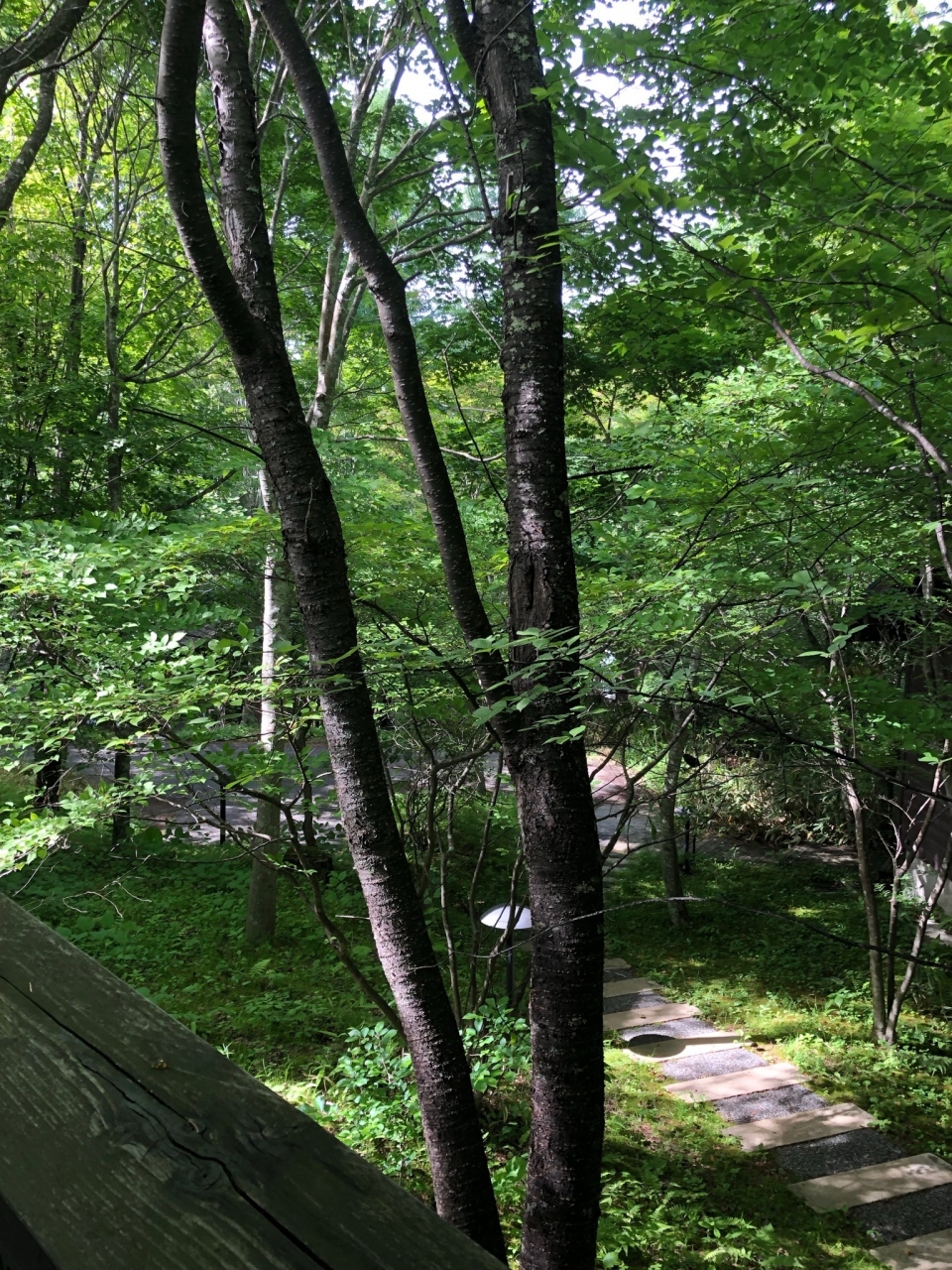 部屋からトンボの湯までは歩いて10分程ですが、坂がきついので帰りは送迎を頼みました。