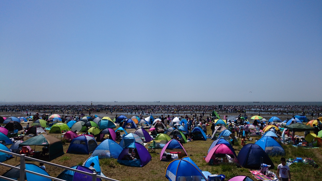 パパと息子が朝6時に車で出発。現地に着いてテント立てて寝たり朝ごはん食べたり。