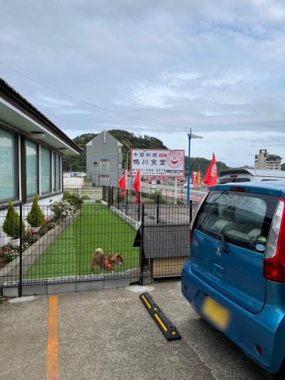 レストランやアパレルショップ等が入った建物の1階角にあって、入り口にはオーナーさんの保護犬がお出迎えしてくれます。