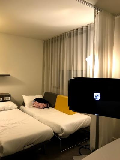 T2ABとEの間、TGV駅の上にあるバス停からシャトルバスに乗ってすぐの距離にあります。バスは道の込み具合によっては多少遅れることがあります。ホテル周辺はお店は見当たらないので必要なものは空港内で買っておいた方が良いです。部屋はキレイで十分な広さがあって備え付けの電子レンジもあります。唯一、空港が近いため窓を開けると飛行機の音がもの凄いですが、閉めれば全く気になりません。